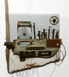 Nicole can be found either in her overcrowded studio or out on Central Coast streets rifling through kerbside pick-up piles searching for inspiration. Her assemblages reflect a curious attachment to times past and things lost, an increasing frustration with the prolific waste of modern society and a healthy obsession with rusty metal and liquid nails.
